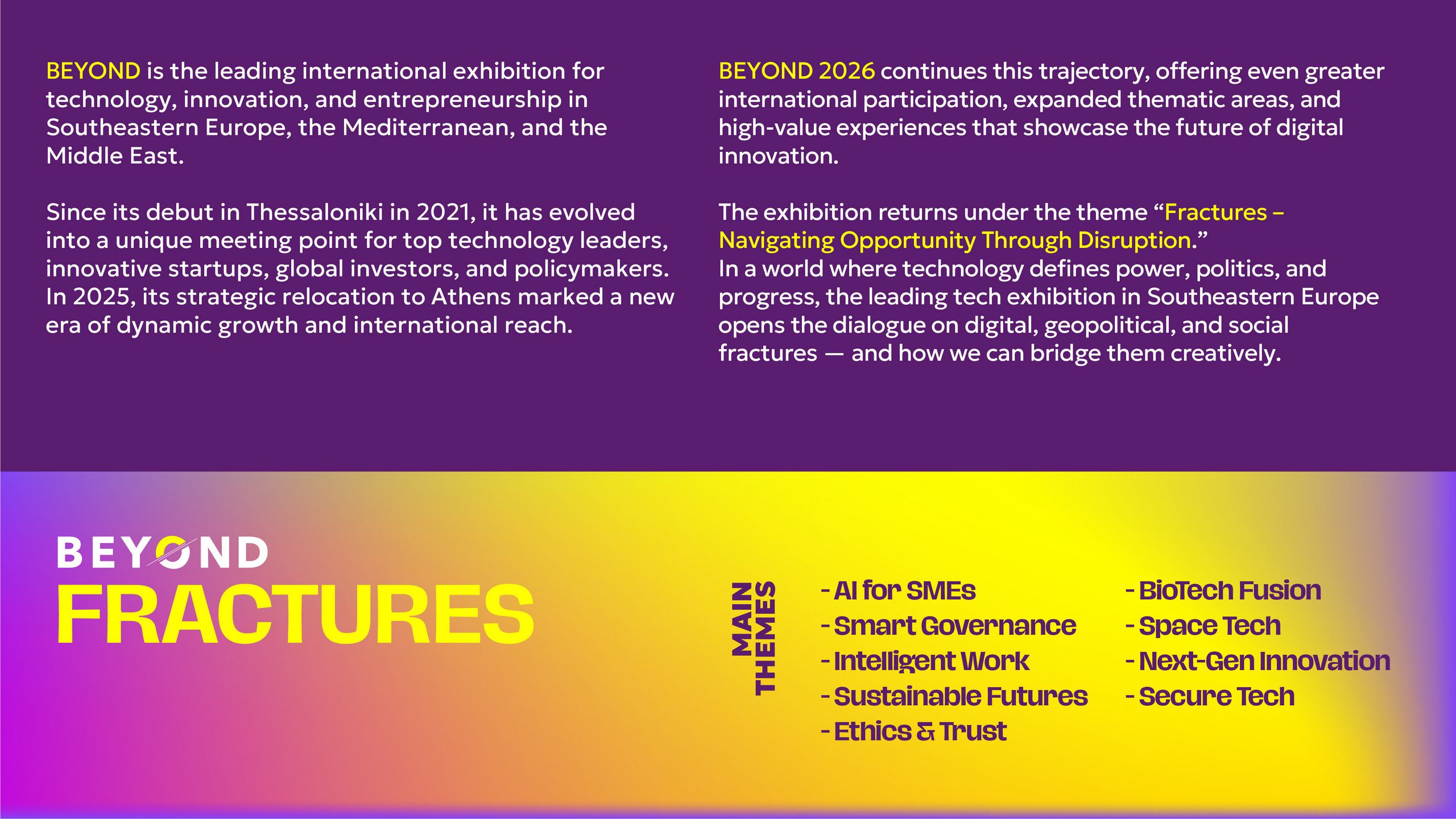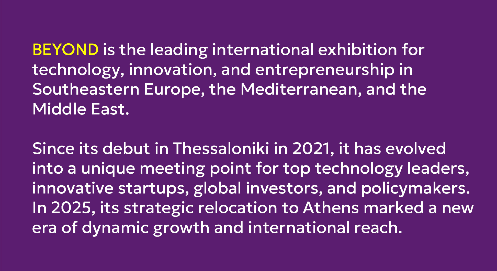BEYOND, the leading international technology and innovation exhibition in Southeast Europe, returns from 17-19 June 2026 at the Metropolitan Expo in Athens. After the successful 2025 event, BEYOND 2026 comes to highlight the present and future of technology and innovation, with an emphasis on sustainability, applied digital strategy and innovative solutions to market needs.